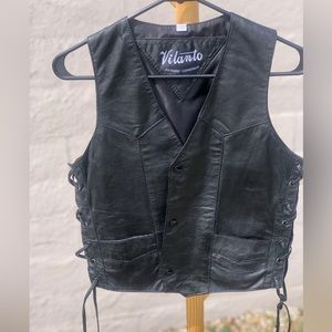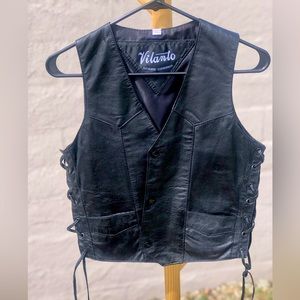 Vintage 90s grunge punk biker black leather side lace up leather vest