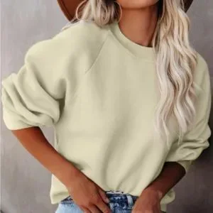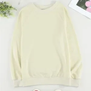 95%Polyester+5%elastane, O neck. Plain sweatshirt is loved by modern ladies for its concise and casual style. Crew neck, raglan sleeve and relaxed fit shape. This casual pullover is suitable for most body shapes and cozy to wear. The thick fabric ensures you warm for the chilly seasons.