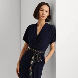 Lauren Ralph Lauren Medallion-Belt Jersey Dress in Lighthouse Navy, Sz 6