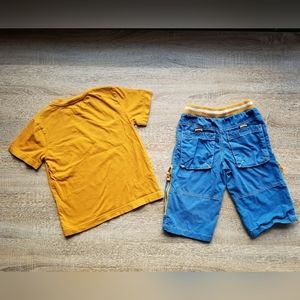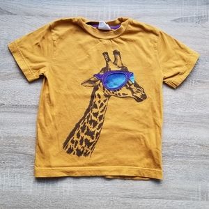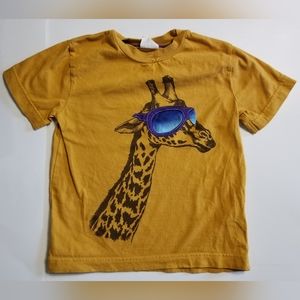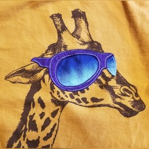 The giraffe wearing sunglasses is a pinnacle scene right there. I can just imagine it in a car driving down the highway. Excuse my imagination, I watch too much Spongebob. The glasses are a purple / blue which contrasts nicely with the yellow. The giraffe tee is a 5-6 and the shorts are a 6 but this set was worn together. It is excellent condition & worn approx. 2x by my eldest. This set matches perfectly even though the shorts are from 2010 & the tee is from 2011.