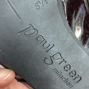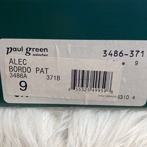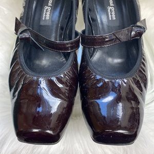 Paul Green “Alec” Patent Leather Mary Jane Heel Square Toe Bow in color Bordo (a dark brown-black color) Made in Austria