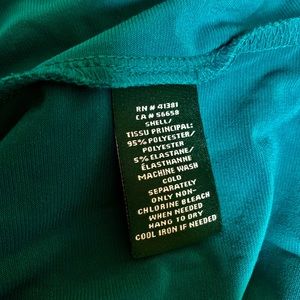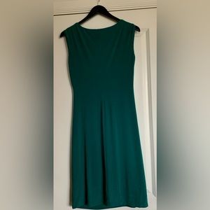 The most functional dress ever. Beautiful emerald green Travels well when packed. Sleeveless, Slip On. Fully Lined Stretchy Fabric. Ruched front hides everything. This dress can be worn in so many ways & create different looks. Add a blazer, jewelry or scarf to change the look. Pair it with sandals for a more casual look or heels for a more polished look. This dress will take you from day to evening seamlessly.
