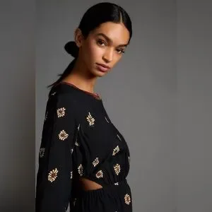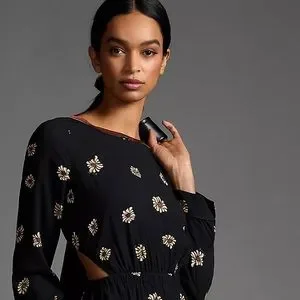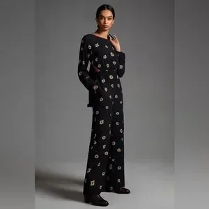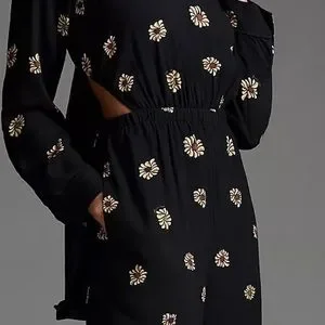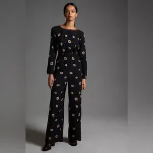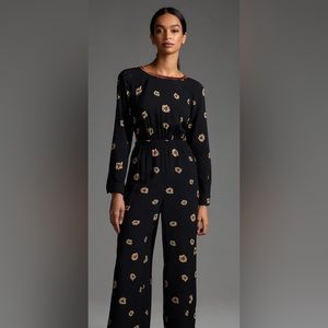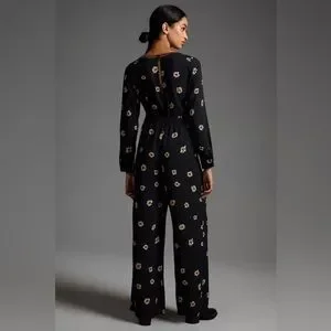 Anthropologie Farm Rio Long-Sleeve Floral Cutout Jumpsuit