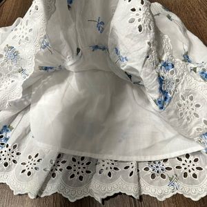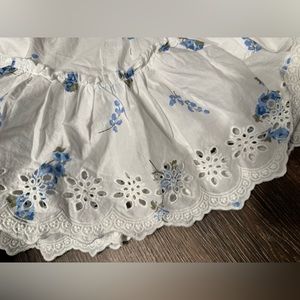 • Ruffled hem with eyelet trim