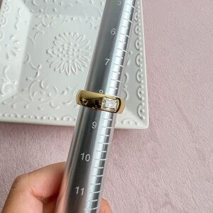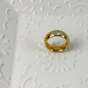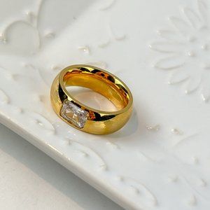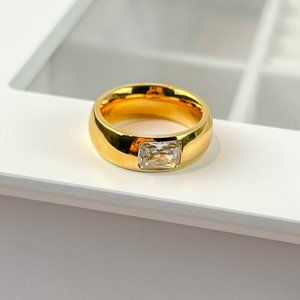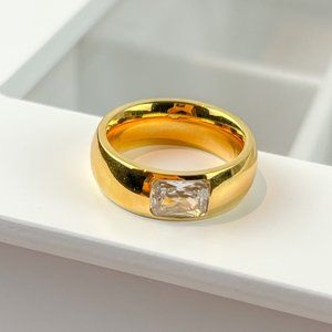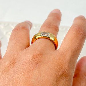Gold Thick Band Ring With Stone Gold Chunky Ring for Women 18k Gold Plated Ring