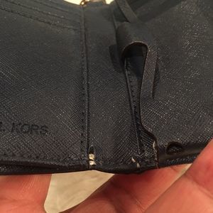 Used in good condition. A wristlet for ID, Credit card, loose change. Slip pocket on the back exterior. Detachable strap. This fits an iPhone 5/5s. Please see photos for flaws on the interior stitching.