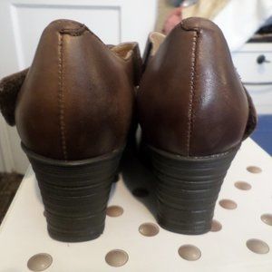 Earth Spindrift Cinnamon Distressed Leather Wedge Shoes NIB Sz 8.5