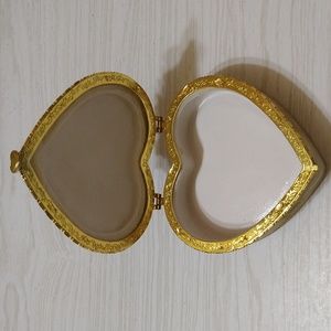 Vintage Bisque Porcelain Jewelry Box With Roses and Gold Trimming