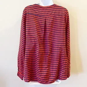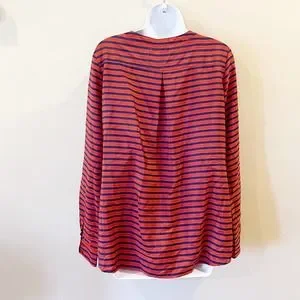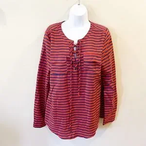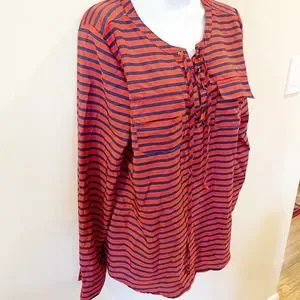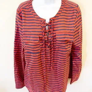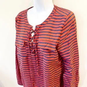 Umgee Tie Front Striped Blouse Orange Size Large