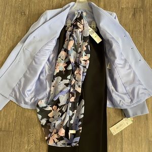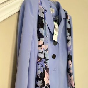 New with tags! This versatile (and beautiful!) suit could be worn with flats for Easter dinner or paired with heels and worn as your next power suit as you negotiate your next big deal! Included with the suit is a multi colored scarf that can be easily removed as desired.