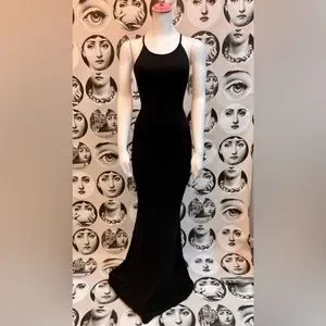 This stretch Rayon/Spandex maxi dress in black has adjustable ties that cross cross the open back design. Derrière ruching accentuates all your curves, but the material is soft and lightweight! This is a flirty fun dress in any casual setting, like your next vacation. 🤩 Sz S, excellent preloved condition. Please see photos for tags and info.