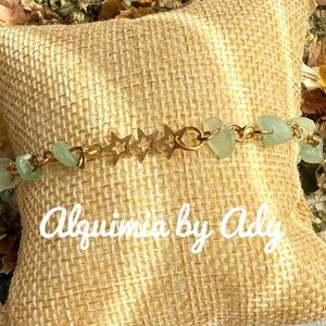 Aventurine gold star charms minimalist bracelet