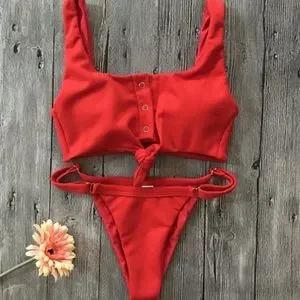 Become a bay watch babe in red, with a fun twist. The top is so casual, yet sexy at the same time and the bottoms match perfectly! Unfortunately, the top was too big on me, so I’m selling the set. I only tried it on. It’s still brand new!