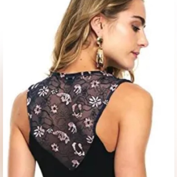 Guess 🌸 Blue Bodysuit with Pink Floral embroidery and back back, size: Medium💫
