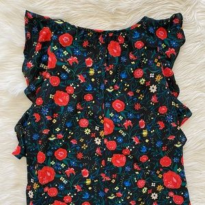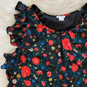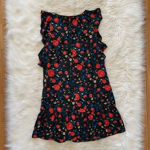 J. Crew Black Red Floral Sleeveless Flutter Sleeve Dress