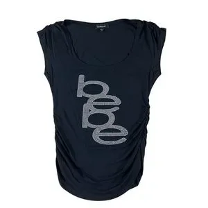 Vintage Y2K Bebe Womens Sleeveless Black Rhinestones Top Cute size Small USA