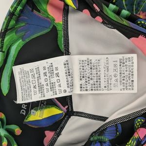 Nike Women's Tights Size Small Black Pink Green Floral Birds Ruched 3/4 Length