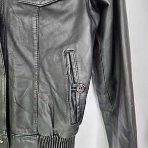 Kookai leather jacket short vintage Victor Hugo black bomber style size 8