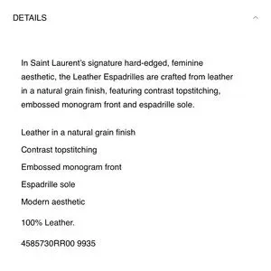 Saint Laurent beige leather espadrilles with box and dust bag