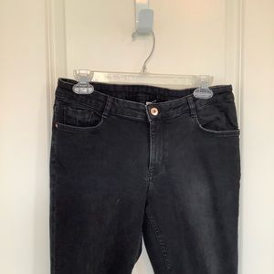 H&M Divided Skinny Denim Jeans Women's Size 12 Black Mid Rise Distressed Raw Hem