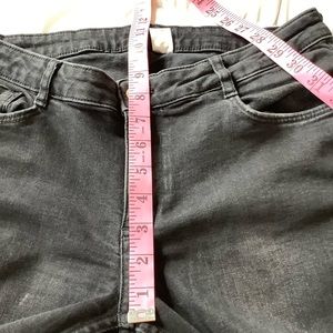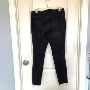 H&M Divided Skinny Denim Jeans Women's Size 12 Black Mid Rise Distressed Raw Hem. In good preowned condition, please see pictures for measurements