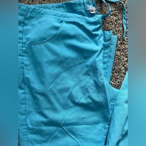Dickies scrub set. Teal and purple set. Both sets size small. Teal pants have marker stain and purple top has a marker stain. Both stains shown in picture. Gently used but still in good condition