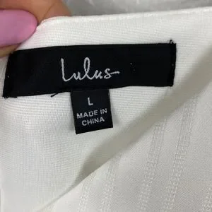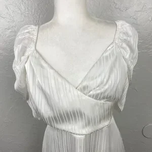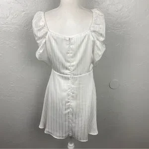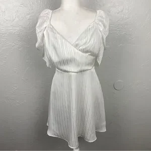Lulus Dance After Dark White Satin Striped Skater mini Dress Large