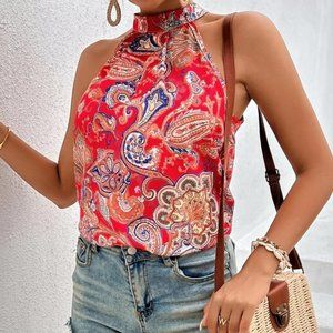 Boho Floral & Paisley Print Tie Back Halter Top