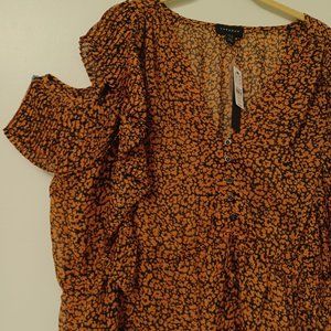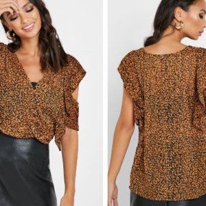 SOLD!--Topshop Animal Print Plisse Blouse, Rusty Brown/Black, Size 14
