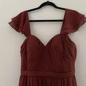 This dress was beautiful and was super flattering to wear. Featuring lightweight chiffon fabric that is artfully pleated in the bodice, fully lined, back zip, complete with chiffon flutter sleeves.