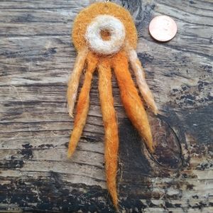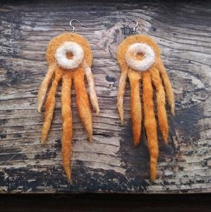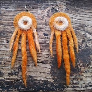 These eye-popping wool earrings are meant to sweep your shoulders and grab attention. It was hard to not keep these for myself! This is one of my more work-intensive pieces, combining a few different wool types through hand-rolling and needle felting.