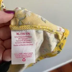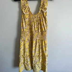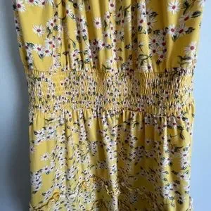 Yellow flower sun dress with ruffles. JR size Xl (15-17) only wore 1 time