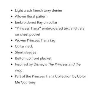 Make Me an Offer!NWT Collector's Disney Tiana Men's Floral Button up Dress Shirt