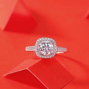 Certified 1ct. t.w. Moissanite Diamond Halo Engagement Ring NEW C