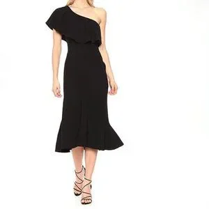 NWOT Dress the Population Raquel One Shoulder Ruffle Mermaid Midi Dress Sz -S