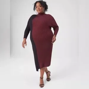 Mock-Neck Asymmetrical Colorblock Sweater Dress (LIKE NEW-WORN ONCE)