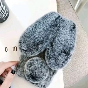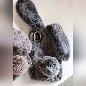 iPhone 14 Gray Fuzzy Bunny Phone Case