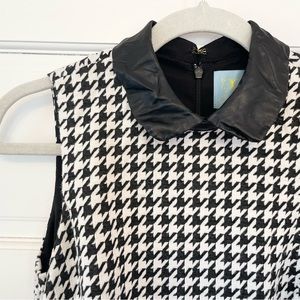 Boutique Houndstooth Dress, Faux Leather Collar, Size 0