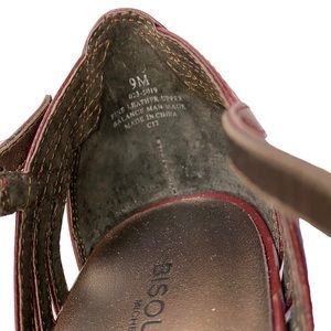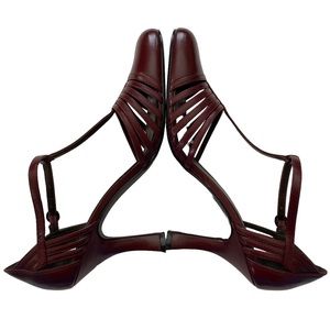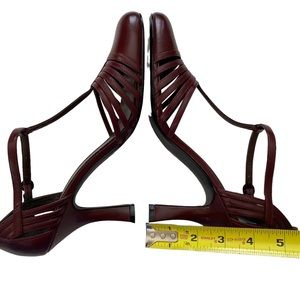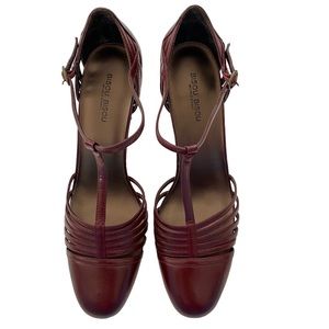 BISOU BISOU Michelle Bohbot Faye Womens Wine Red Leather Heels T-Strap