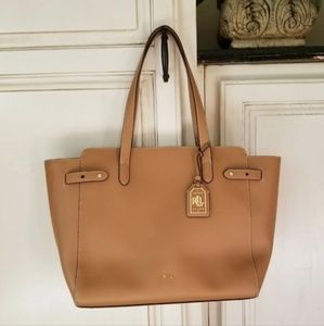 LAUREN BY RALPH LAUREN Harper Parker Tan Leather Tote Large $244 NWOT