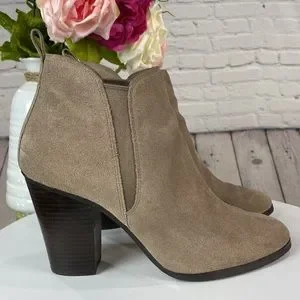 MICHEAL KORS Tan Suede High Heel Slip On Ankle Boots