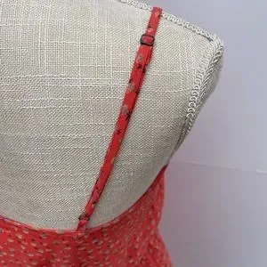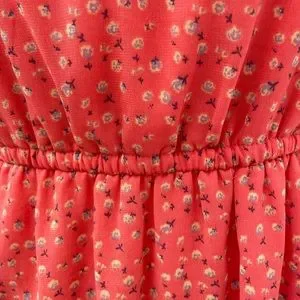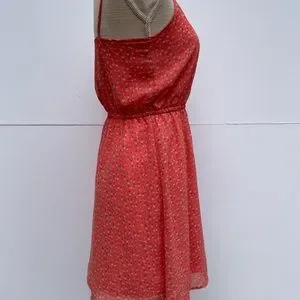 Frenchi Brand: Adjustable spaghetti strap sun dress. Women’s size small. Bright melon color with light purple & cream floral patterns.