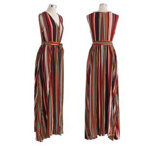 CHIC WISH || Elegance Keeper Striped V-Neck Sleeveless Maxi Dress - XS
