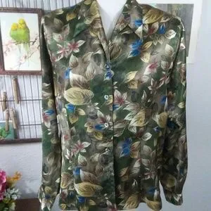 Beautiful rich colors and super soft fabric. This blouse will be a must to your wardrobe. Measurements: pit to pit 22" shoulder to hem 26" 100% polyester