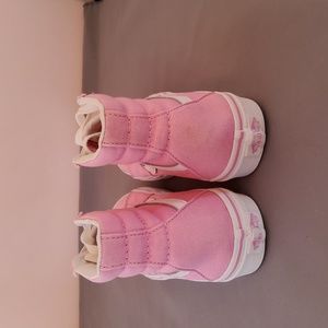 Vans hi-top unisex pink canvas and white leather sneakers. Mens size 5, womens size 6.5. Like new, in excellent condition.