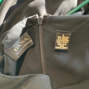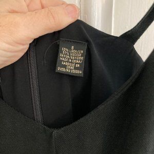 Perfect Dana Buchman little black dress in linen/viscose/rayon blend with a slight linen texture. Scoop neck with thin straps, low back with back zip, fitted sheath. Summer weight, fully lined. Hits just above the kneww (I am 5'3") Good pre-loved condition. See photos. Perfect for summer nights.