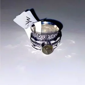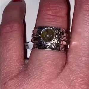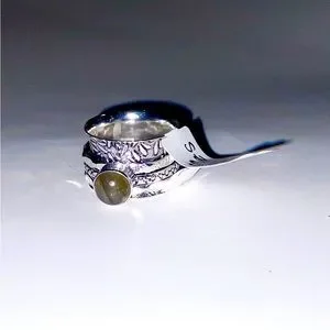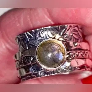 Handmade Natural Labradorite Stone Spinner Ring .925 Stamp Size: 5.5