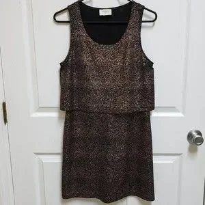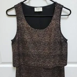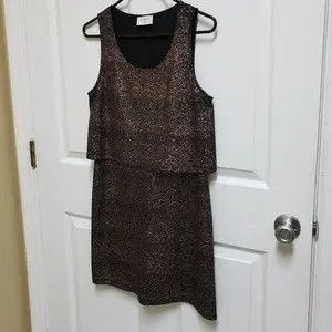 Everly Black with Metallic Sparkle Layered Look Sleeveless Dress Size Medium