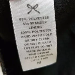 Shell: 95% Polyester 5% Spandex. Lining: 100% Polyester