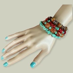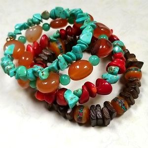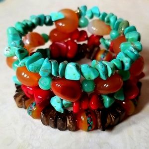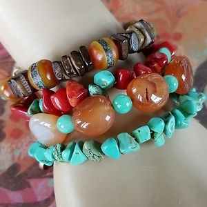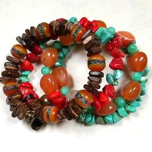 Hand Crafted Boho Tibetan Agate, Turquoise and Amber Wrap Bracelet